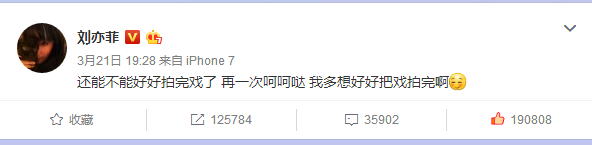 一向不爱撕逼不爱博关注的刘亦菲很少公开表现自己的负面情绪,当时引起了很多粉丝的关心和猜测。