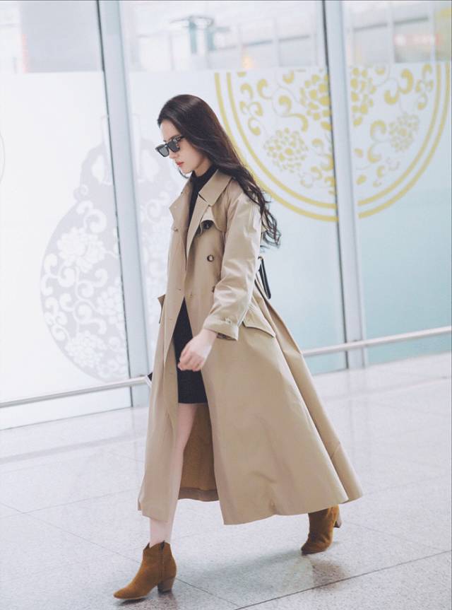卡其色风衣内搭裙装,宛如高雅的公主时刻散发迷人魅力。