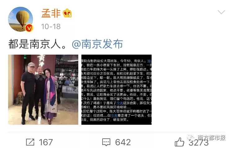 10月18日,江苏卫视主持人孟非发了一条微博,讲述自己下车时因开车门未注意观察,将一名骑电动车的大哥碰倒的轻微事故。