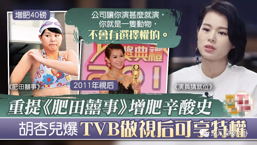 除了没有选择权、没日没夜拍戏外,胡杏儿还透露,曾有某导演说她“这辈子都不会有机会做主角的”