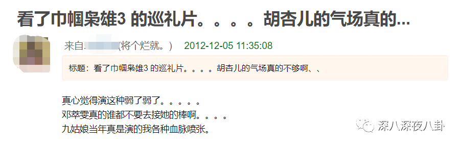 这里还有个小插曲,因为这个角色,胡杏儿还被当年还是初中生的邓紫棋大骂了一顿,大意就是“她是全世界最肥最贱最丑最不会演戏最讨人厌的演员”,还说:“如果06年无线颁奖礼给了个胡杏儿女主角奖,就会立马打烂电视。”
