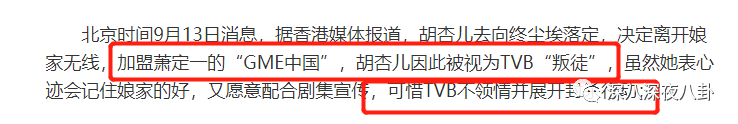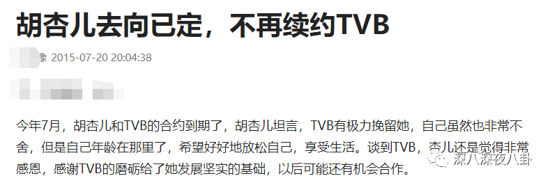 这个料是否属实不确定,唯一可以确定的是,当年胡杏儿解约TVB的时候走得还蛮彻底的,不像很多约满的其他艺人还会跟TVB合作,胡杏儿甚至部头约都没跟TVB签