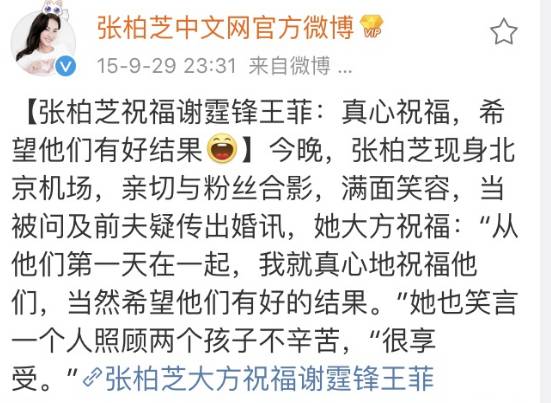 不过张柏芝直面谢霆锋王菲的话题,基本上都是笑脸祝福~