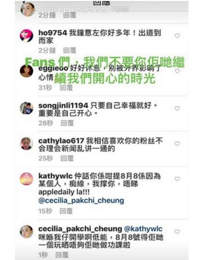 她还晒出粉丝支持她的截图说:不要理他们啦,我们继续我们开心的时光~