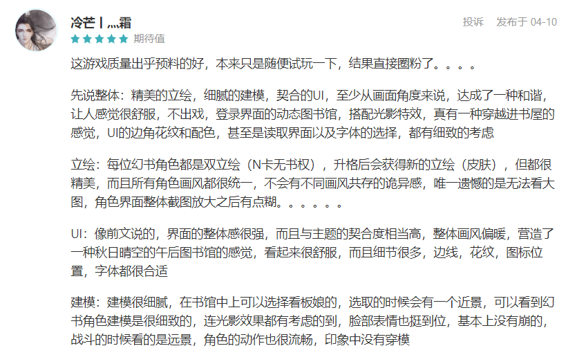 面对趋于饱和的国内二次元市场,依托大众化的书籍拟人题材,与不断扩张的受众圈层相结合,搭配网易强大的自研能力和对品质的高投入,《幻书启世录》为拟人类题材游戏开创了新的发展思路,并在剧情化场景、游戏美学等方面构筑了一套颇具规模的内容体系。
