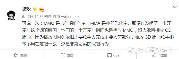 简单来说,就是梁欢认为,黄子韬在个人演唱会上,全程不仅没有用现场乐队,甚至没有用CD伴奏带,而是直接用了CD原声带。