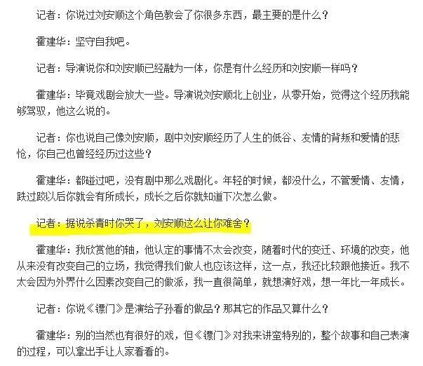 原因无他,刘安顺背井离乡打拼和霍建华闯荡内地事业还有点像,看来是在别人的故事中找到了自己,不然杀青的时候怎么会哭!
