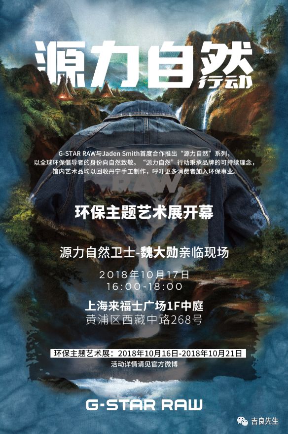 而且10月17日,他还将会现身上海来福士,参加 G-STAR RAW 源力自然环保主题艺术展的开幕活动。