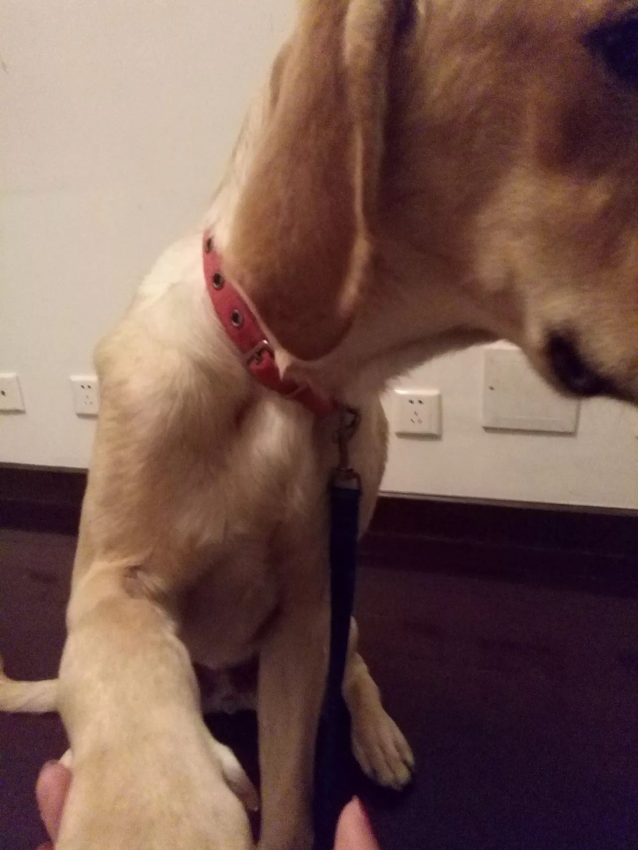 不过后来发现并不是我们的黄子掏小朋友,而是前头那幢关在车库里的狗子。