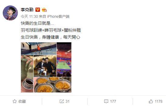 从事后李克勤晒出的照片来看,他为妻子准备的生日惊喜,其实一点都称不上浪漫奢华,不仅没有广邀好友来办生日party,似乎也没送什么昂贵珠宝首饰等作为生日礼物,但4碗蟹粉拌面,以及照片中他陪着卢淑仪打对方喜爱的羽毛球,一起看羽毛球比赛的场面,却处处透露着温馨。