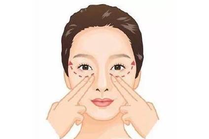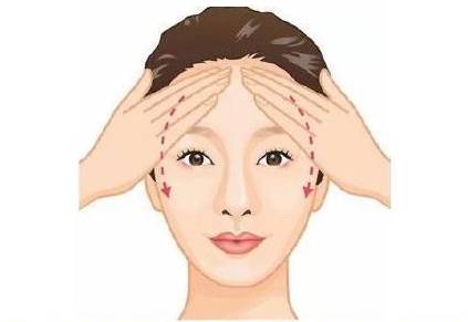 第四步:双手分别用食指和中指从内眼角轻抚直至太阳穴,还可以轻轻点按。