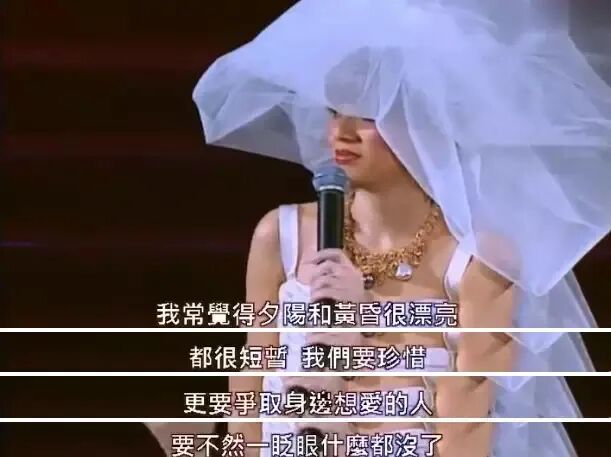 懊悔于自己未曾走过的路,这不过是人之常情,却不一定意味着我们愿意让人生重来。而梅艳芳在最后的告别演唱会上选择穿上白纱,我也情愿理解为她并不是后悔自己没有结婚,而是要把自己嫁给歌迷,嫁给舞台。