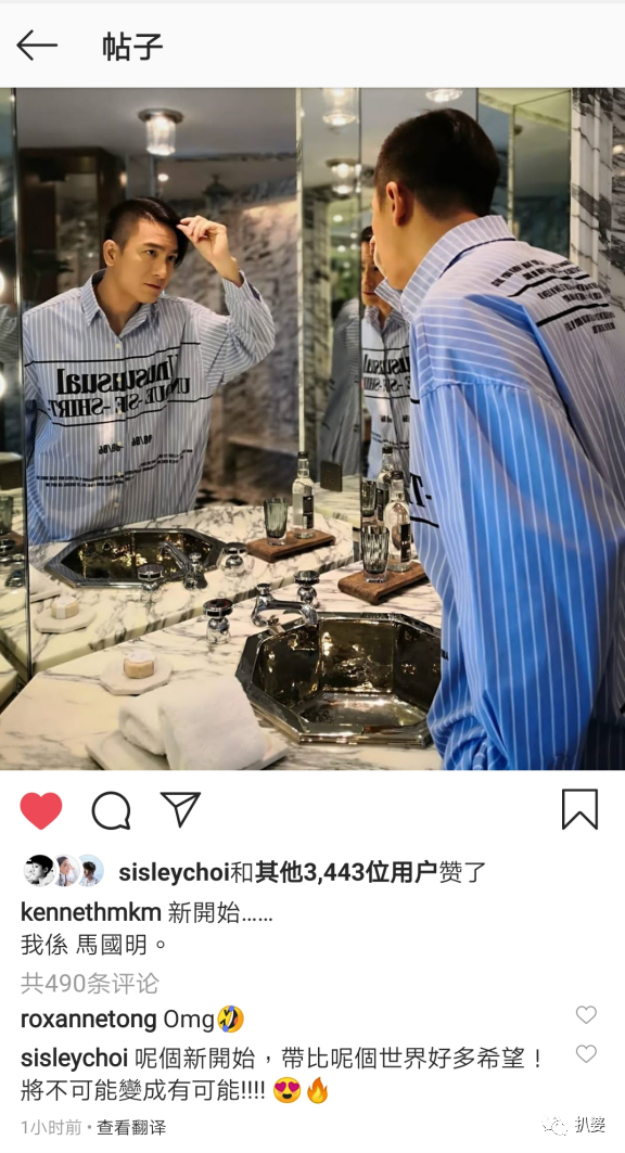 但其中有个插曲很有意思,刚玩ins的马国明被发现第一个关注的ins对象居然是汤洛雯的堂妹,之后又取关了。
