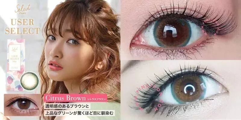 日本品牌,分为自然系和裸眼系,其中桃子最爱的就是自然系的citrus brown,花纹配色都很特别,内圈是棕色,最外圈是蓝绿色,看着就像一个“绿皮蛋”一样,戴着总想忍不住多照镜子几眼。