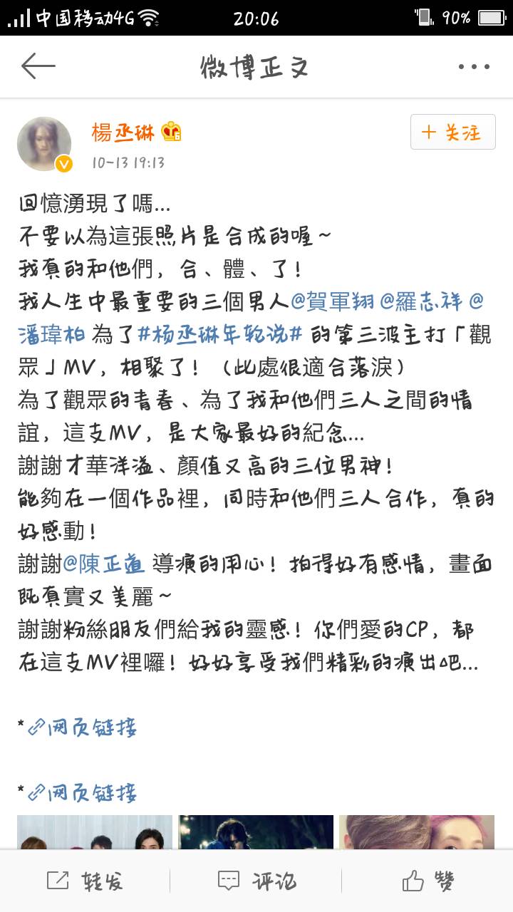 我们再来看看杨丞琳的微博,好像很淡定,她感谢了所有人也@了所有人,唯独没有李荣浩什么事,这是要搞事情,还是两人的情感不需要这些言语的表达呢?不过相信李荣浩不会在乎的。
