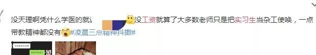 @MoRome:医学生实习没有工资,还要给医院交钱。食宿自理,还在坑爸妈。本科,哪忙到哪,不给请假。厌倦了这个医院。只希望快点毕业吧。