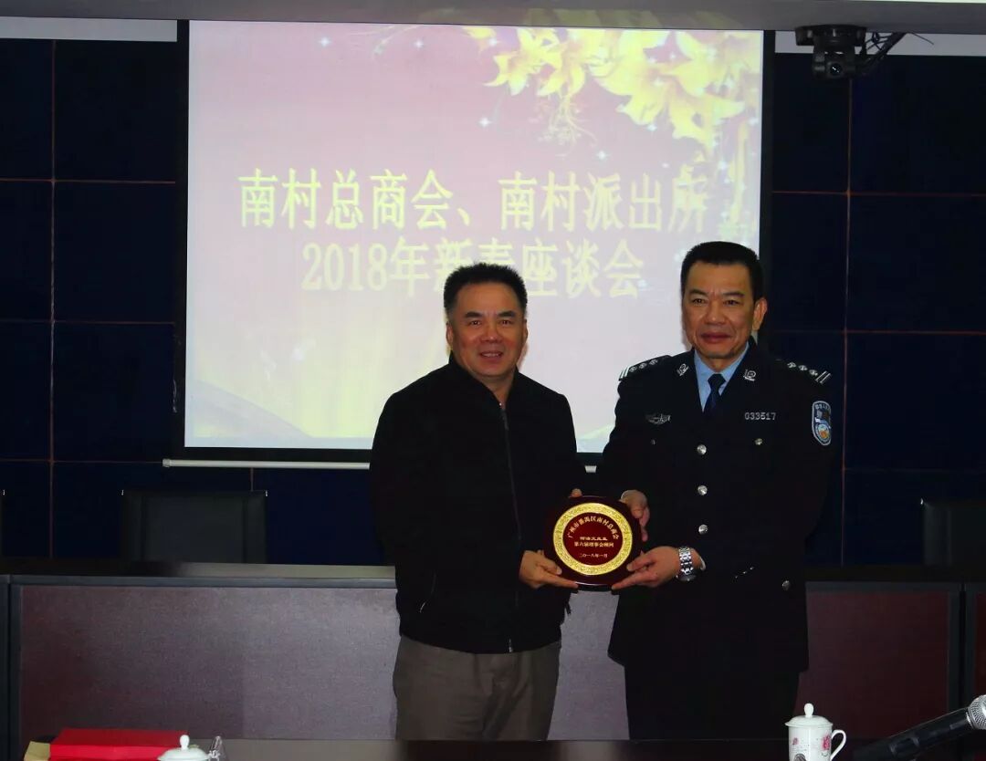 广州市工商联副主席、番禺区工商联常务副主席、南村总商会会长王锦荣赞扬南村派出所的警务人员做事认真负责,维护南村镇的良好秩序,保障市民安全,为社会民生发展作出了极大的贡献。新的一年里,南村总商会将积极响应党委政府号召,继续承接政府职能转移工作,发挥企业及政府的桥梁纽带作用,全力助推南村镇经济发展。