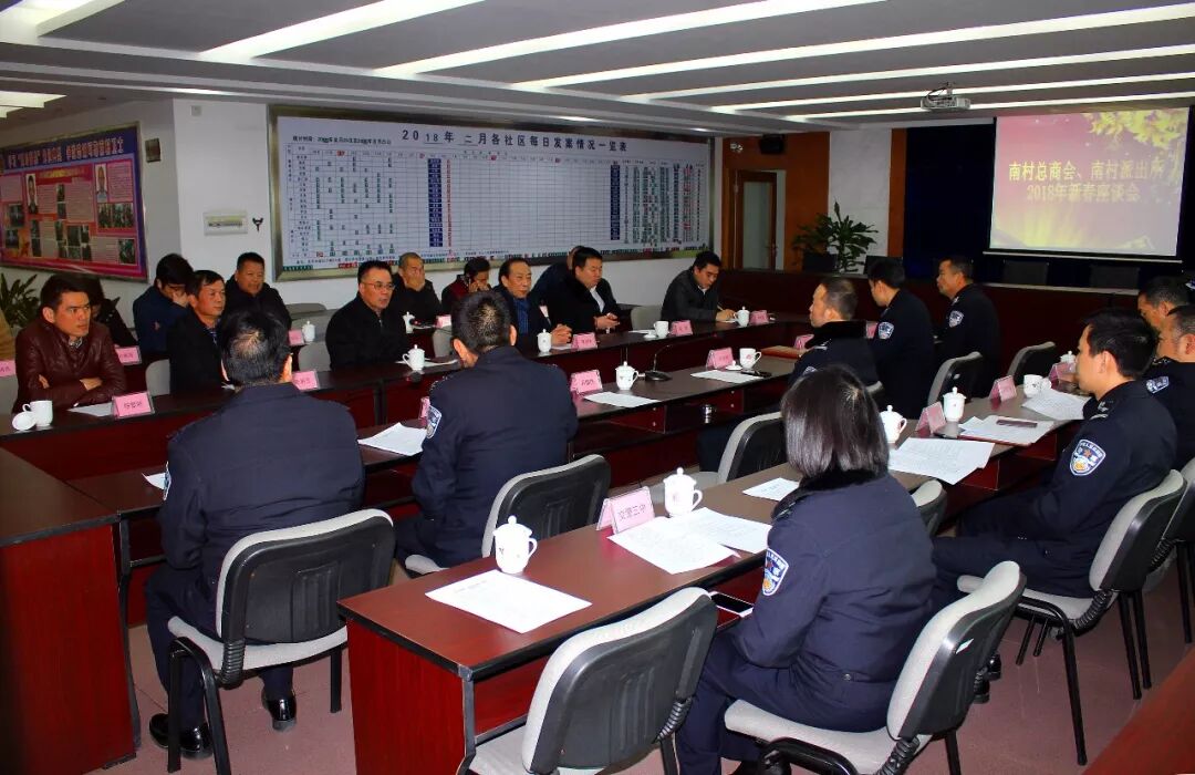 2月2日下午,南村总商会联合南村派出所召开2018年新春座谈会,番禺区公安分局党委委员、政工办主任李耀明,南村镇党委副书记周健民,镇党委委员、派出所所长何浩文及领导班子成员,广州市工商联副主席、番禺区工商联常务副主席、南村总商会会长王锦荣,常务副会长、总商会服装行业协会会长罗永林,常务副会长孟辉、陈明忠,副会长陈黎明、相鸿、刘美雨、罗志江、陈朝赞、曹恒灿、凌伟杰,党委书记、秘书长罗君亮,监事长萧锦华及交警三中队代表共22人出席了会议。