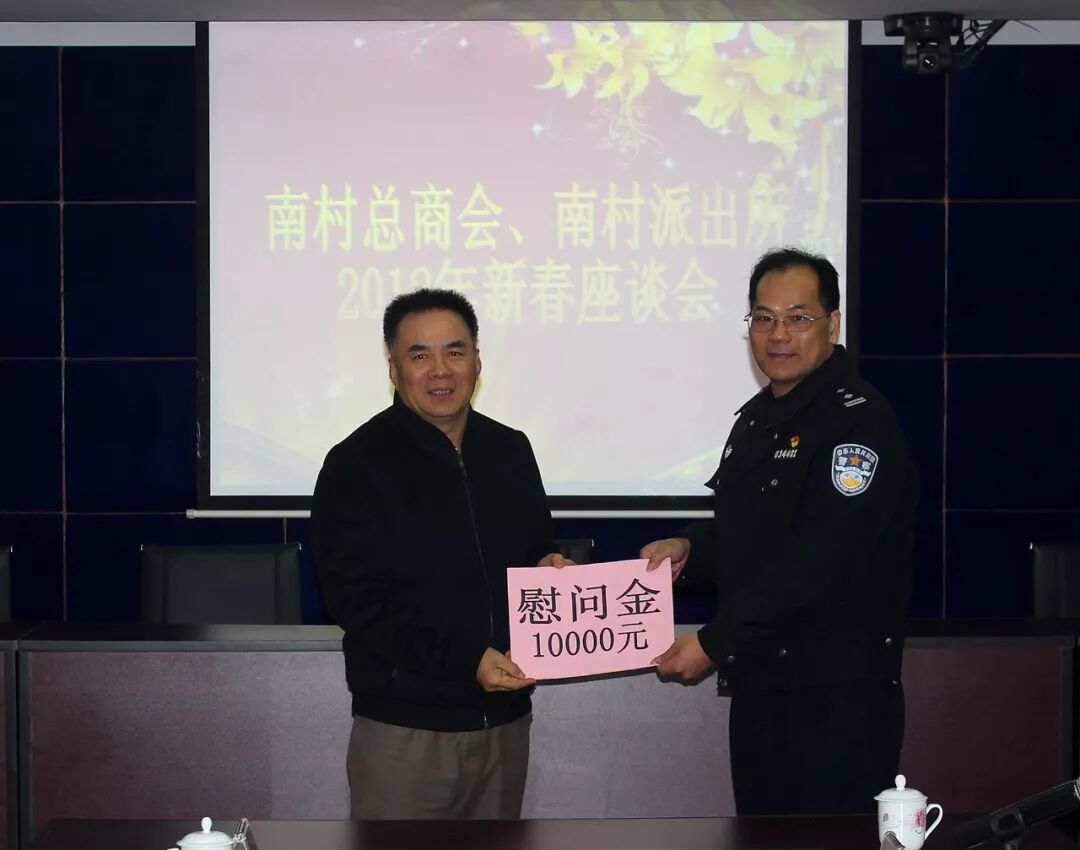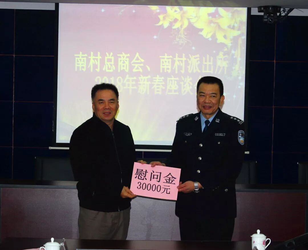 广州市工商联副主席、番禺区工商联常务副主席、南村总商会会长王锦荣代表南村总商会先后为派出所、交警三中队送上节日慰问金。