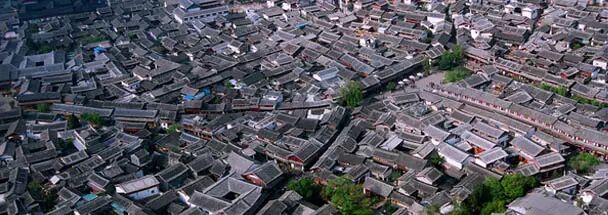 大研古城位于云南省丽江市丽江坝的中部,北依象山、金虹山、西枕狮子山。中国5A级旅游景区,国家级历史文化名城,也是世界文化遗产之一。它自古就是远近闻名的集市和重镇,也是中国历史文化名城中两个没有城墙的古城之一。东南面临数十里的良田沃野,古城内小巧流水,城内的民居建筑布局错落有致。发源于城北象山脚下的玉泉河水分三股入城后,又分成无数支流,穿街绕巷,流布全城,形成了“家家门前绕水流,户户屋后垂杨柳”的诗画图。大研古城在南宋时期就初具规模,已有八、九百年的历史。自明朝时,大研古城称“大研厢”,因其居丽江坝中心,四面青山环绕,一 片碧野之间绿水萦回,形似一块碧玉大砚,故而得名。街道不拘于工整而自由分布,主街傍水,小巷临渠,300多座古石桥与河水、绿树、古巷、古屋相依相映,极具高原水乡古树、小桥、流水、人家的美学意韵,被誉为“东主威尼斯”、“高原姑苏”。充分利用城内涌泉修建的多座“三眼井”,上池饮用,中塘洗菜,下流漂衣,是纳西族先民智慧的象征,是当地民众利用水资源的典范杰作,充分体现队与自然和谐统一。古城心脏四方街明清时已是滇西北商贸枢纽,是茶马古道上的集散中心。四方街以彩石铺地,清水洗街,日中为市,薄暮涤场的独特街景而闻名遐迩。古城中至今依然大片保持明清建筑特色,“三坊一照壁,四合五天井,走马转角楼”式的瓦屋楼房鳞次栉比,既突出结构布局,又追求雕绘装饰,外拙内秀,玲珑清巧,被中外建筑专家誉为“民居博物馆”。