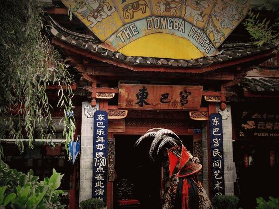 作为东巴文化的主要部分,无论是文字、音乐还是舞蹈,它们的传承和发展都离不开东巴,坐落在丽江古城的东巴宫,更为现代人提供了一个了解东巴文化的窗口。纳西族普遍信奉“东巴教”,“东巴”是纳西语,意为“智者”,(也有一些地区称为达巴)也就是巫师和祭司。东巴宫,顾名思义就是智者云集的地方了。东巴宫坐落在丽江古城东大街,它的门楼上装饰的是东巴的“五幅冠”,大门两旁悬挂着东巴的木牌画,东巴宫内别具一格的装饰和文化活动更会让您感受到东巴文化的魅力。中国舞蹈家协会云南分会会员杨宏:“大研古城被列入世界文化遗产以后,国内外的游客都来了,东巴文化又是世界文化遗产中的一个主要组成部分,或者是它的内核部分,所以我们就企图搞一个窗口,向外展示东巴文化的音乐舞蹈这一部分。” 来到丽江的人们除了欣赏美丽的自然风光以外,听一听纳西古乐、看一看东巴舞蹈、了解一下东巴文化也成了他们必不可少的一项内容。
