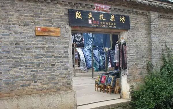位于束河古镇内。院子里摆满了各式各样的产品,东西都很漂亮,不过价格也都不算便宜,好看的基本都以百为单位,游客不少,不过都是欣赏,照相的。前面是店铺,后面是作坊,大染缸里泡着深蓝色的染料,染好的布料挂在竹竿上随风舒展。