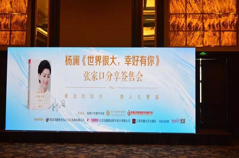 3月25日,杨澜新书《世界很大 幸好有你》分享签售会在张家口国际大酒店举行。 这是杨澜历时3年,亲笔撰写的又一全新个人随笔集,书中讲述了她对婚姻、儿女、家庭和幸福的理解。