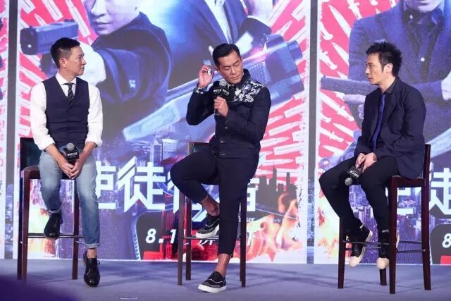当日的发布会现场被布置成酒吧场景,张家辉、古天乐、吴镇宇三人举杯共话兄弟情,十分应景,当聊起“阿蓝”(张家辉饰演)和“少爷”(古天乐饰演)的关系时,张家辉直言这是一段“相爱相杀”的纠结兄弟情,“今天我救你,明天你救我,但关系中又藏着不少秘密”。