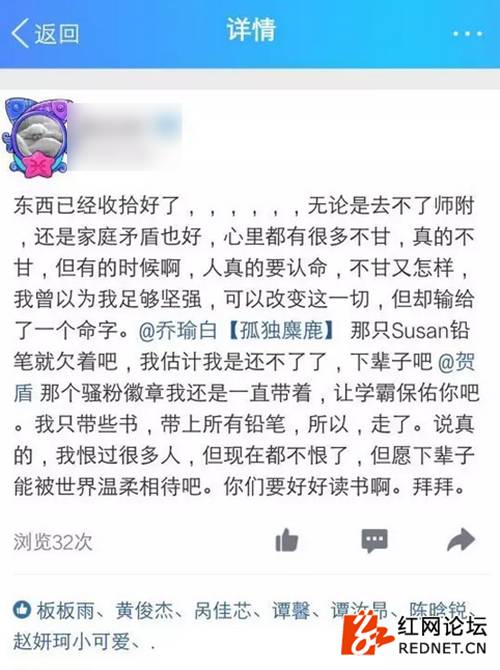 “有时候,人真的要认命。不甘又怎样,我曾以为我足够坚强,但却输给一个‘命’字……我恨过很多人,但现在不恨了,愿下辈子能被世界温柔对待。”7月15日,家住浏阳市天顺御景城的初三毕业生小志不见了——他没有给父母亲人留下任何话,只有QQ空间里,还有着这个少年曾经流露的不满。