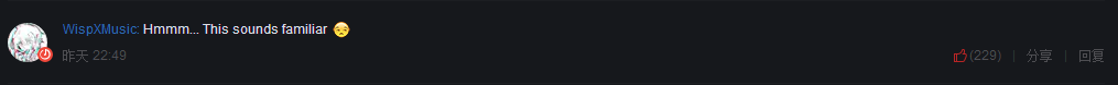 更尴尬的是,原作品《Vibrance》的本人Wisp X亲自找上了AJonnyCool的《韵律古国(Rhythm China)》的网易云音乐评论区,指责到“嗯。。。。这听起来很熟悉”。附带斜眼Emoji。尽管中国抄袭音频不在少数,但在网易云音乐直接被原作者登门拜访的事件可就相对屈指可数了。不知道网易云音乐为什么对于这种实锤的抄袭作品视而不见呢?难道您们真的听不出雷同程度吗?