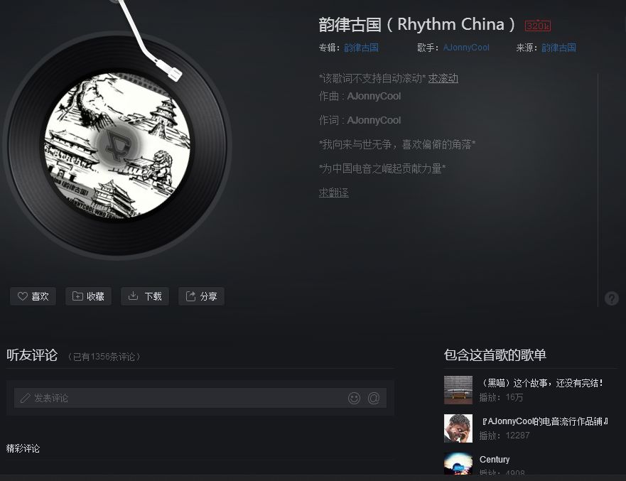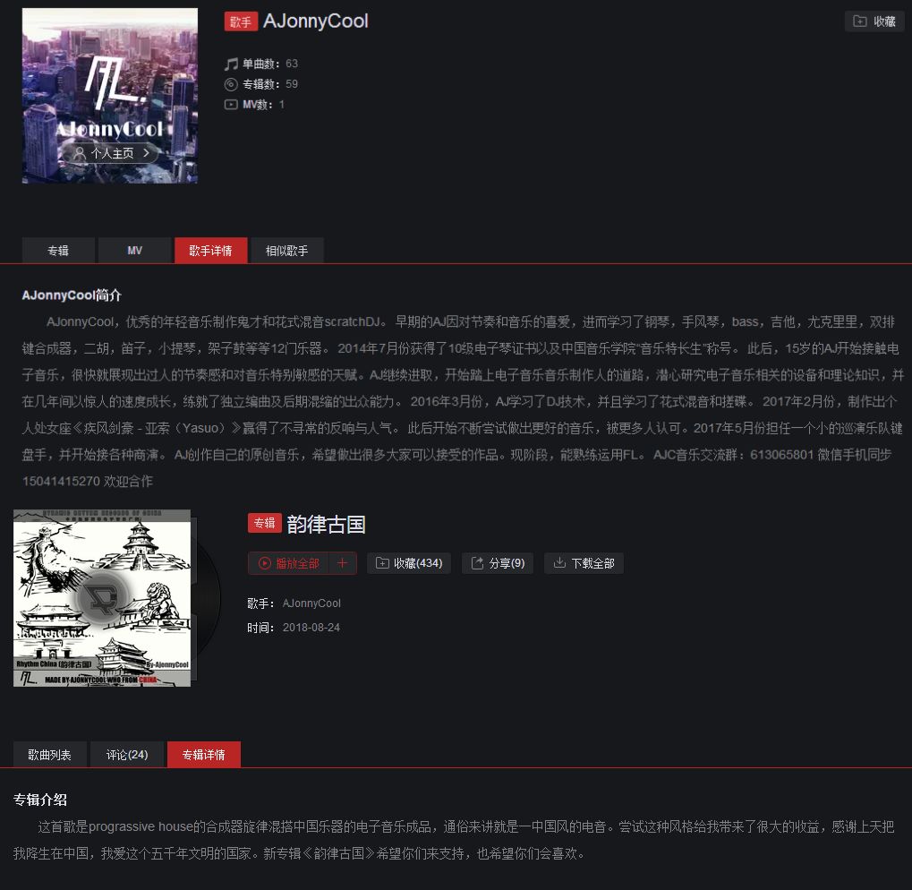 就在8月24日,自诩“精通12门乐器以及花式Scratch的优秀、年轻的制作鬼才”的抄袭少年AJonnyCool,上传了他的最新单曲《韵律古国(Rhythm China)》。抄袭鬼才AJonnyCool认为“这是一首中国风电音,很感谢中国XXXXXXXXXXXX”。详见下图。没有任何抹黑,一切都是AJonnyCool的自我介绍,彷佛看到了自卖自夸高达800000级的王绎龙的弟子青出于蓝而胜于蓝。