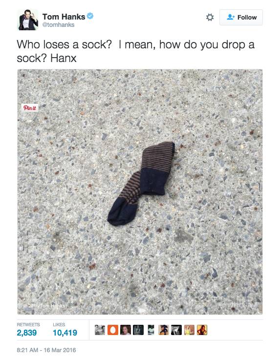 “谁掉了一只袜子?说真的,你是怎么做到只掉一只袜子的?”