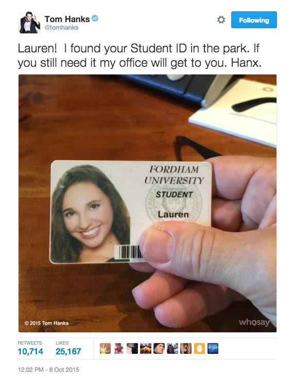 不过大叔真的试过帮人找到过失物。。在去年的时候,他在公园里找到了一个妹子的学生卡,后来妹子看到他发的贴,然后联系他拿回了学生卡。。