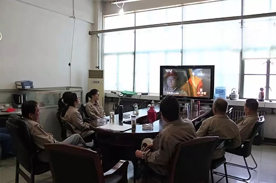 土建分公司双青项目部在宿舍组织员工收看学习张黎明的先进事迹。