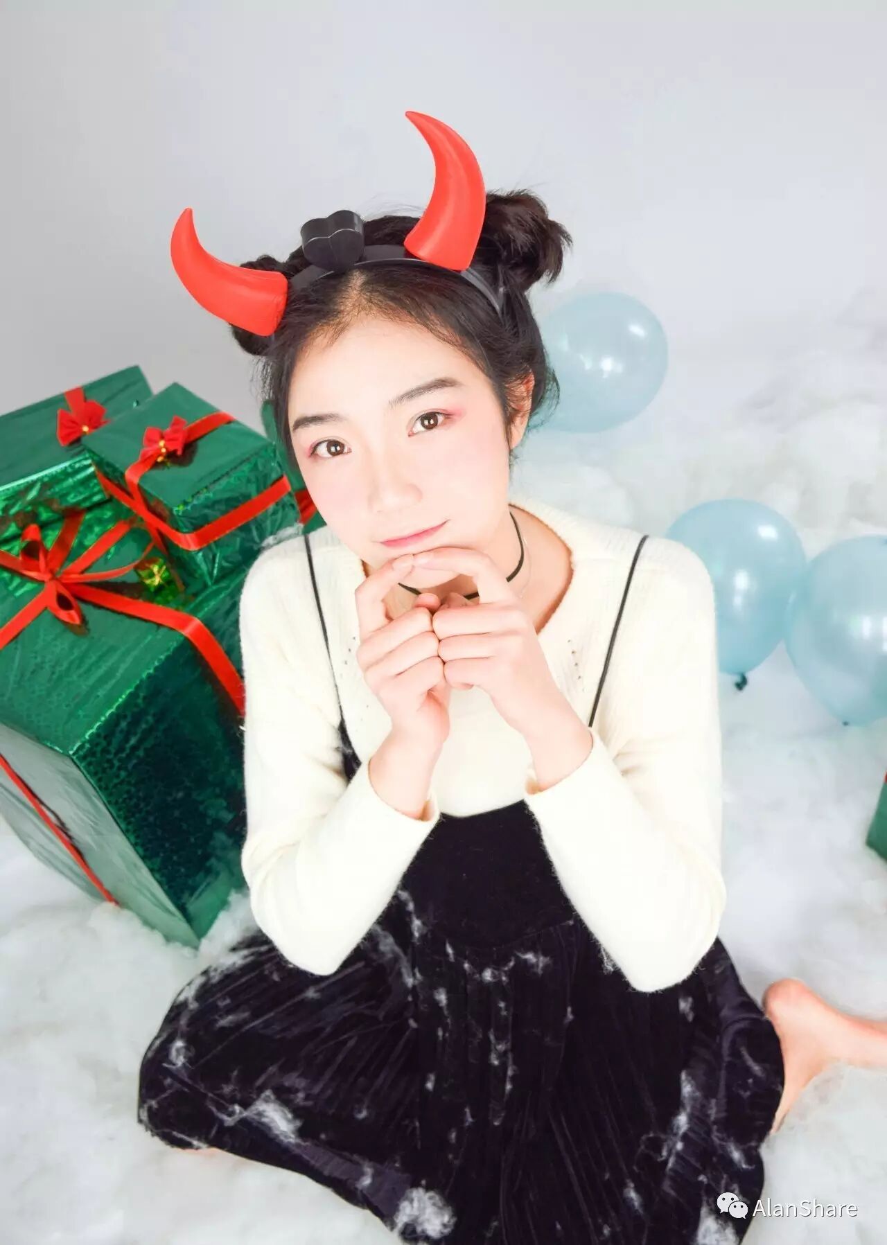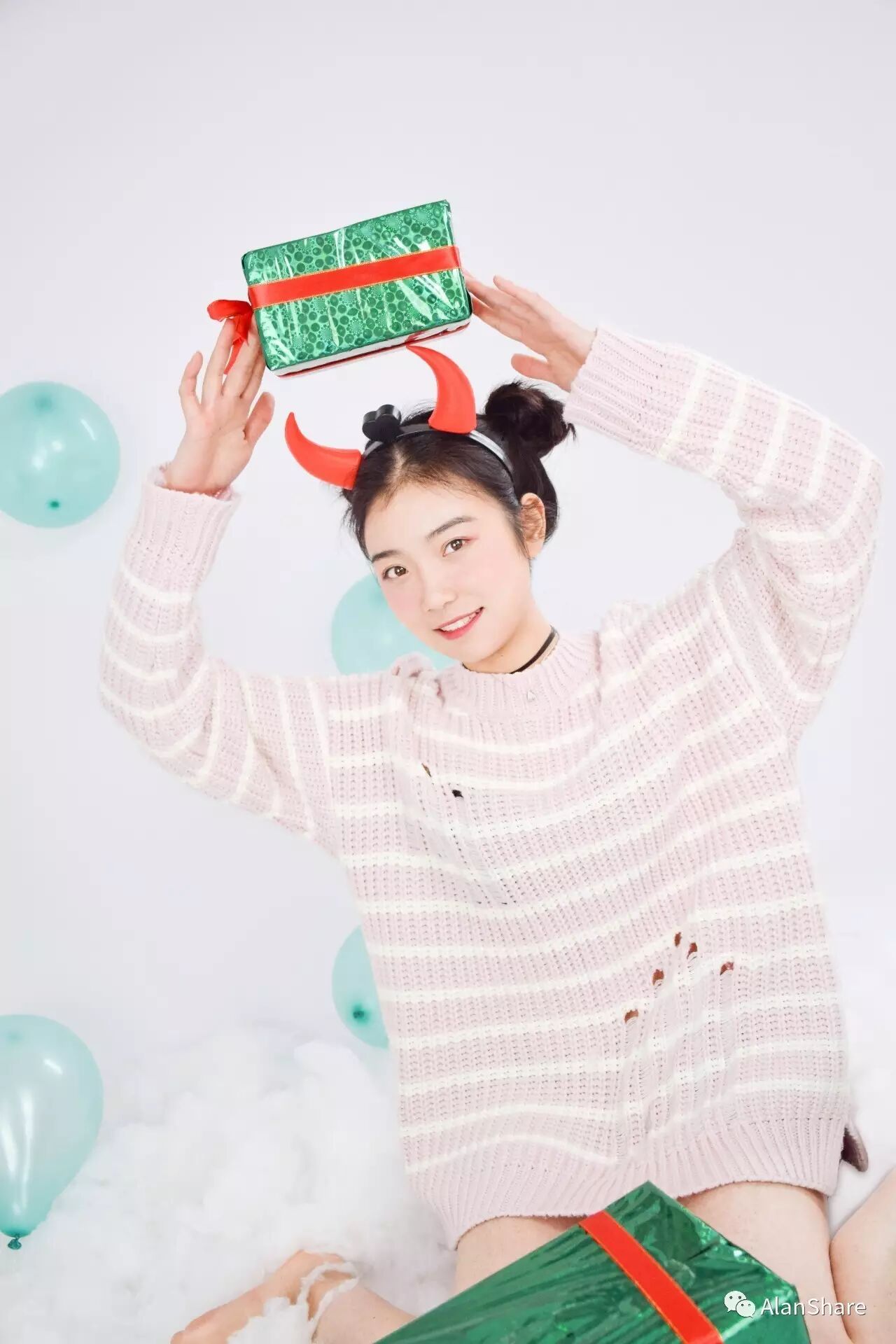 易慧:去淘宝买灯,然后买纯色背景纸跟背景架,自己包装礼物盒,铺棉花跟吹气球,做这些真的很有成就感!我们学校宿舍天台上有空房间,找阿姨借的~我觉得棚拍就是可以自己创作,特别棒,以后应该往棚拍人像发展!