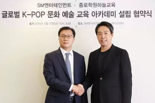 27日SM Entertainment与首尔钟路学院天空教育,在三成洞SM通信中心为共同打造K-POP艺术教育机构而签订合约。钟路学院相关人员表示,为了进演艺圈而放弃学业的青少年非常多,其中有不少是来自外国的年轻人。期盼透过K-POP国际学校能让想进演艺圈的青少年们,可以同时兼顾学业与梦想。