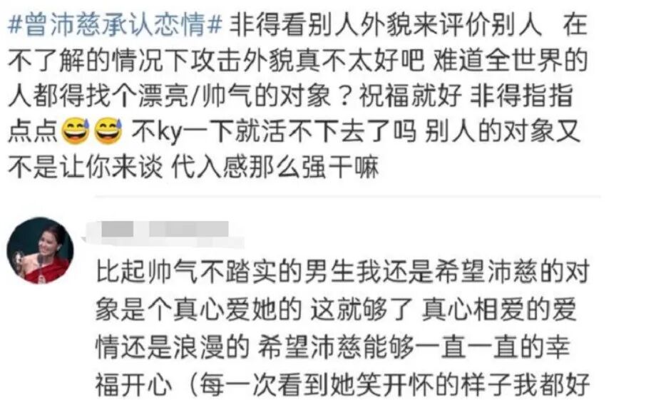也有一部分粉丝表示尊重,这毕竟是人家的私事,曾沛慈找谁当男朋友完全是她自己的自由,再说这样议论别人的外貌也并不礼貌,颜值也不能代表全部,只要女神幸福就好。