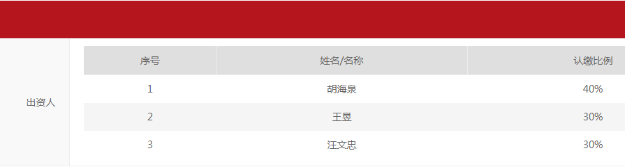 中基协官网显示,海纳百泉投资的法定代表人、董事长为胡海泉。出资人信息显示,胡海泉认缴比例为40%。