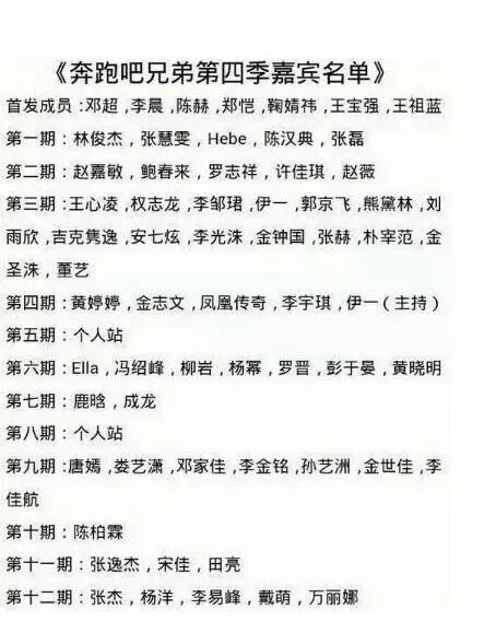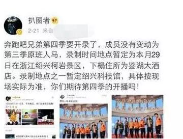 早前,也有自称“浙江卫视《奔跑吧兄弟》摄像组助理”的网友称“跑男4”仍是第三季的原班人马。