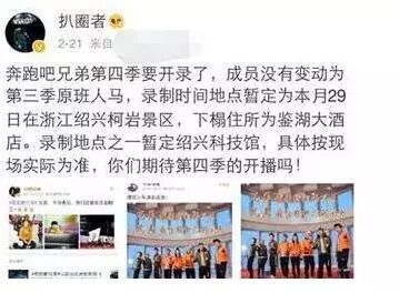 2月23日,有网友爆料称《跑男4》首期将在浙江绍兴科技馆录制,且阵容是《跑男3》的原班人马,还称当地酒店工作人员已经得到确认。