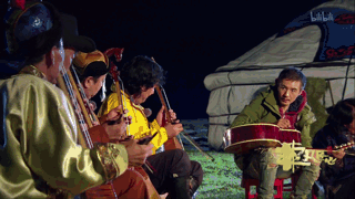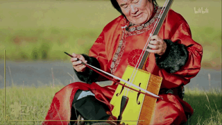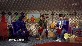 他拿起自己的吉他 与马头琴合奏了一首
