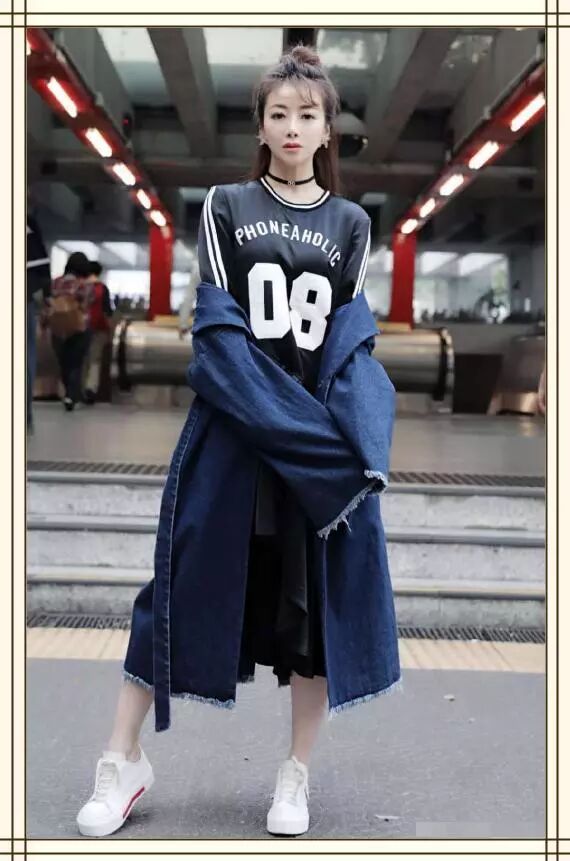 黑色的修身款连衣裙时尚霸气,小圆领的设计更加的俏皮呢,加上白色的线条修饰充满运动风的感觉,配上深蓝色的宽松版大衣时尚感分分钟爆棚。