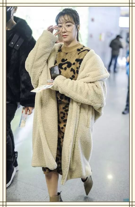 内搭豹纹的毛绒针织内搭很新潮,但是看起来有点臃肿呀,完全没有御姐范儿呀,搭配肤色的打底裤可以说是很保暖了。但是这样的搭配真心不好驾驭。