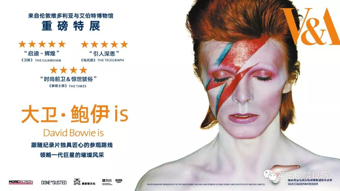 伦敦维多利亚与艾伯特博物馆(Victoria and Albert Museum)史上销售最火爆的展览之一,“大卫·鲍伊 is”被《时代》周刊形容为“时尚并粗粝着”、《卫报》称赞其为“巨大的成功”。该展览展出了英国摇滚旗手大卫·鲍伊的大量珍贵手稿,经典着装、造型,照片,影片,音乐录影带, 舞美设计,专辑封面和私人乐器,曾在多伦多、圣保罗、柏林、芝加哥、巴黎、墨尔本和格罗尼根等地巡回,广受好评!