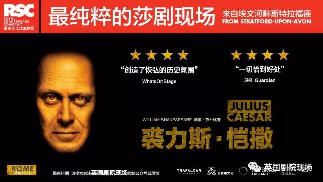 来自埃文河畔斯特拉福德的莎剧现场(RSC Live)本年度力推剧目《裘力斯·恺撒》和《泰特斯·安德洛尼克斯》目前在北京尤伦斯艺术中心、北京三克映画、上海黄浦剧场都有放映。值得一提的是去年好评颇多的艺术总监格里高利·道兰和安东尼·谢尔CP携手献上的《李尔王》5月在黄浦剧场也有一场——全部确认过眼神,板儿正,是你心中的莎剧无疑了。