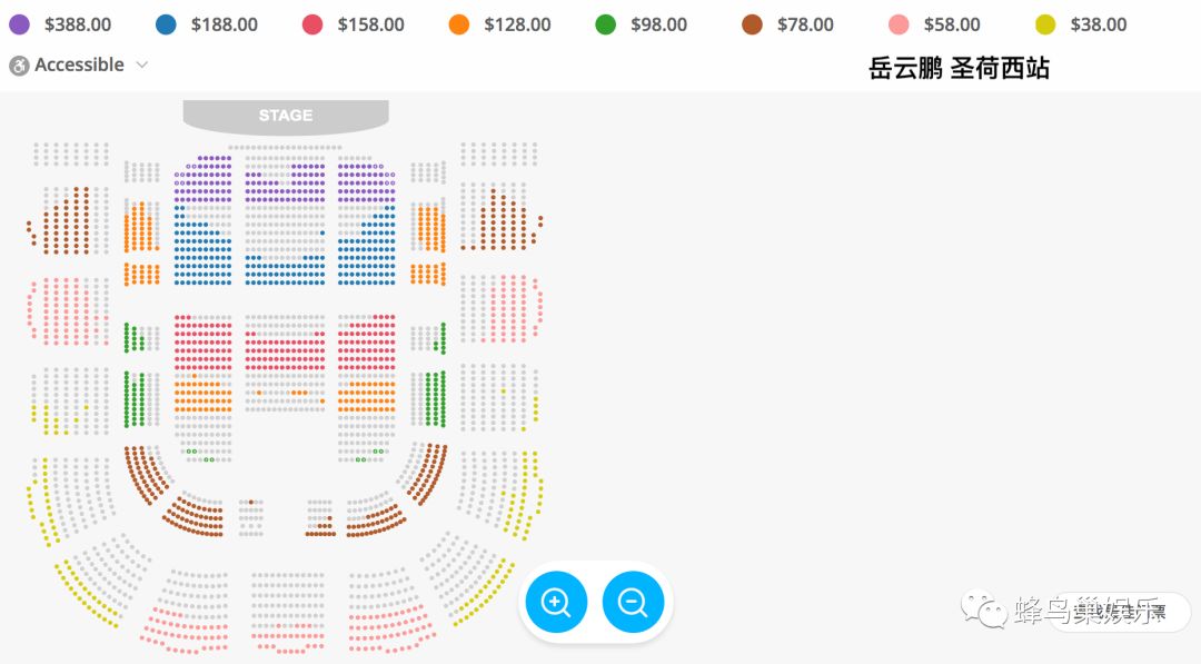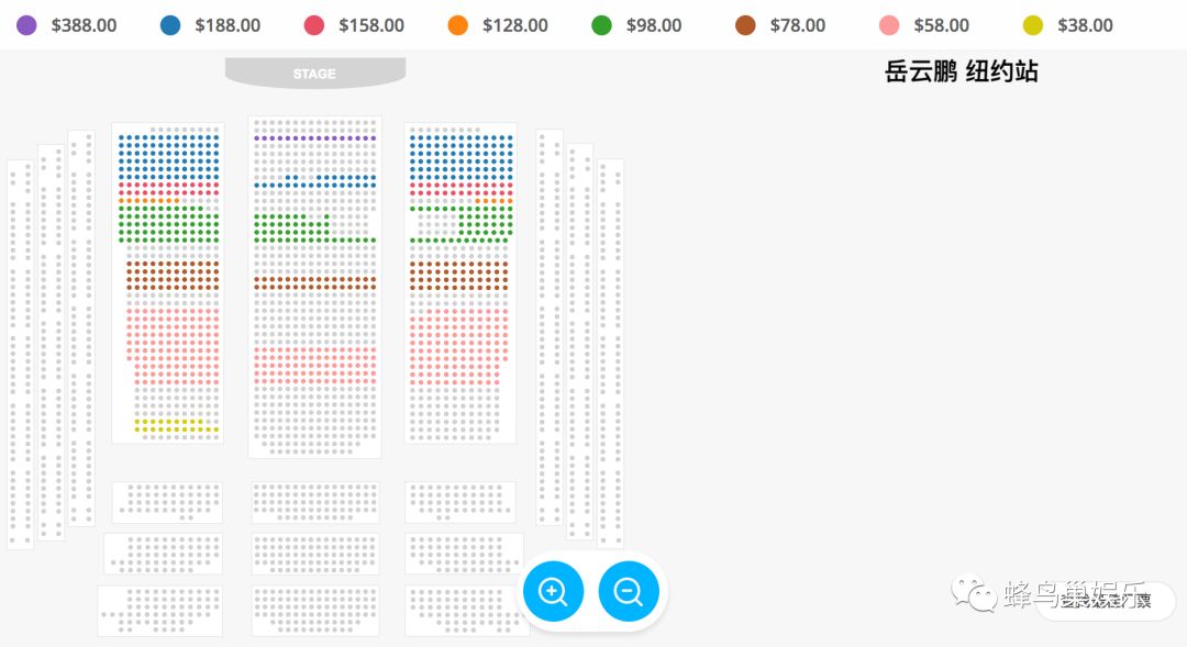 票价:USD$388 VIP、$188、$158、$128、$98、$78、$58、$38