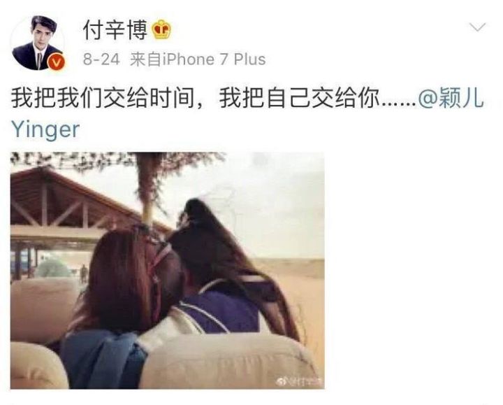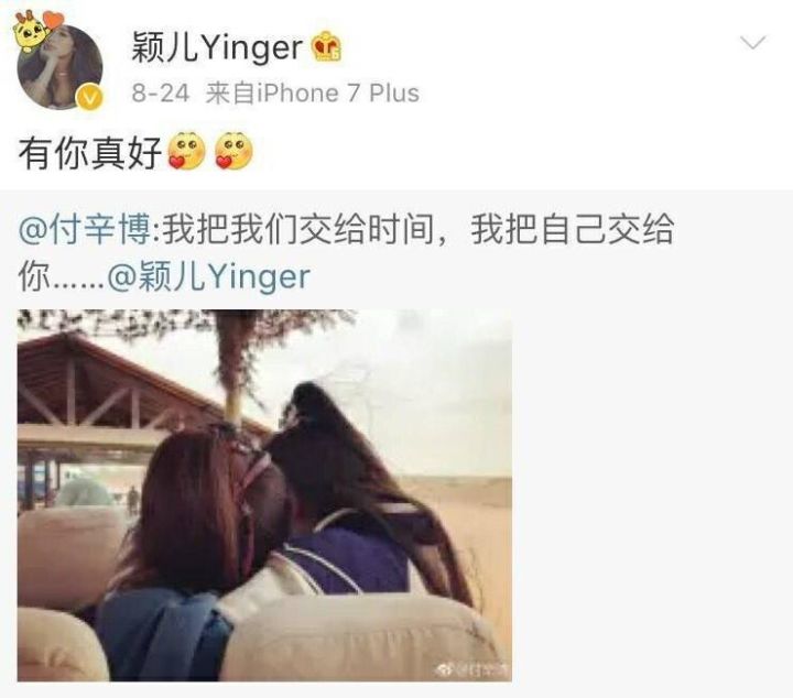 付辛博和颖儿在今年八月公开两人恋爱的事实,两人从节目中的假想情侣发展成现实情侣。