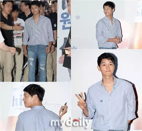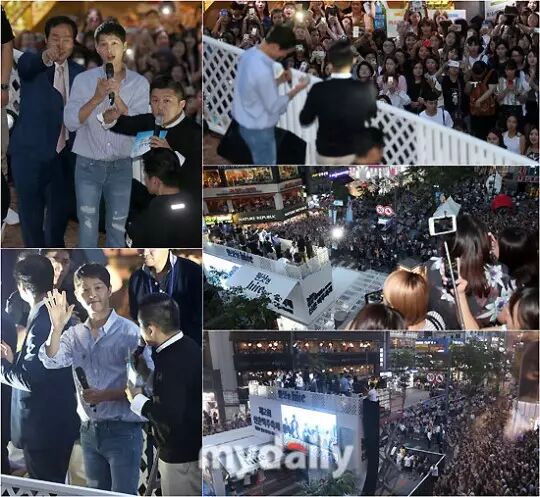 看到这么多为了看他而等待的粉丝们之后吃惊的宋仲基,立即挥手致意并把微笑献给了粉丝们。