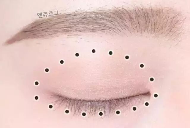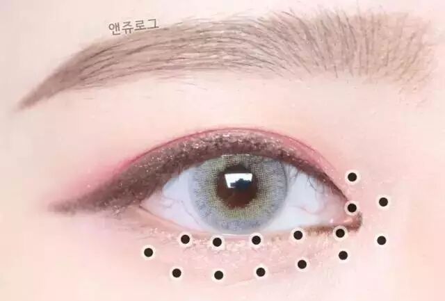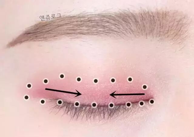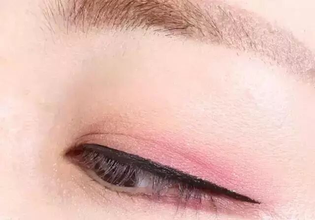 然后把粉色涂在双眼皮褶皱内,最好是点在眼头和眼尾,然后分别向中间晕染!