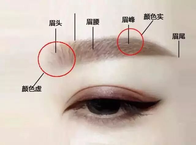 当然这里也是有些技巧的,在画眉的时候,先用眉笔画出整个眉形的轮廓,注意在眉毛的末端画出眉形,然后用眉粉涂抹填充,眉头颜色虚些,眉峰颜色实,整个眉妆更加自然。